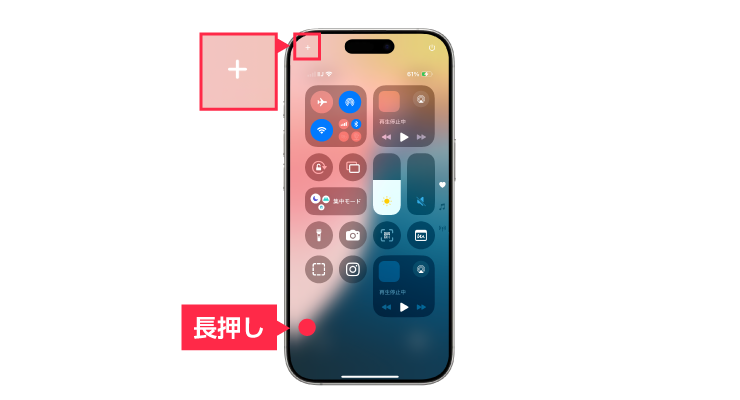 画面左上の「+」ボタンをタップ、または空白部分を長押しして編集モードに入ります。