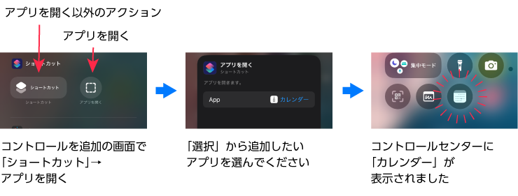 コントロールセンターにアイコンがないアプリを置くには?