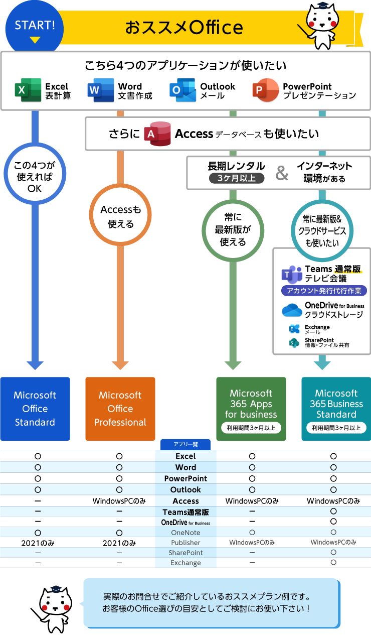 目安があると便利だよね。分かりやすいおススメOfficeのチャート図があるよ。