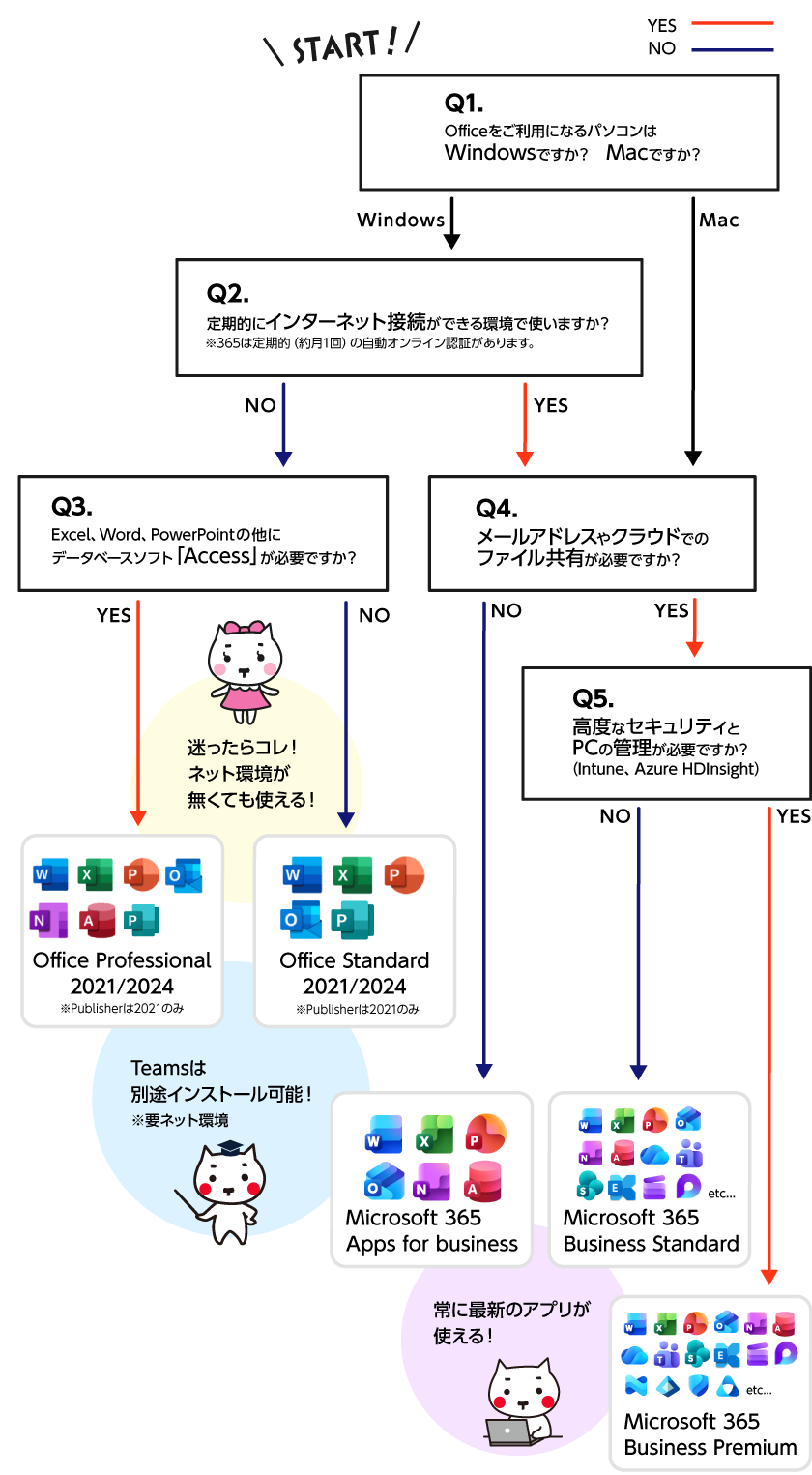 必要 | Word / Excel / PowerPoint / Outlook Access* / OneNote Exchange / SharePoint / Teams / OneDrive Intune / Azure ADなど管理機能 |